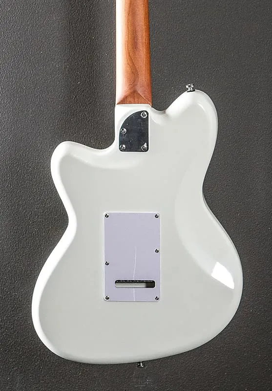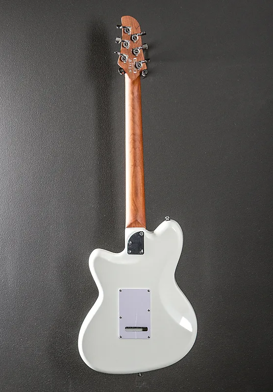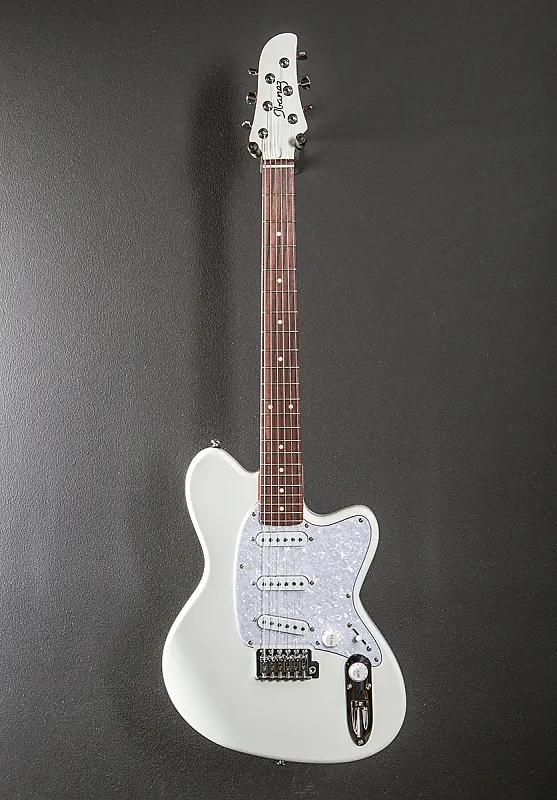 Винтажно-белое глянцевое покрытие корпуса, корпус из нятого, гриф Wizard C из обожженного клена, накладка на гриф из палисандра радиусом 12" с белыми точечными инкрустациями и средними ладами, длина мензуры 25,5", ширина верхнего капа 1 5/8", пассивные/керамические сингл-койл звукосниматели Ibanez ICHI-S, 5-позиционный переключатель с основным регулятором громкости и тембра, тремоло T106 с блоком стальных седел, колки Gotoh MG-T с блокировкой, вес 7,4 фунта, футляр не входит в комплект
