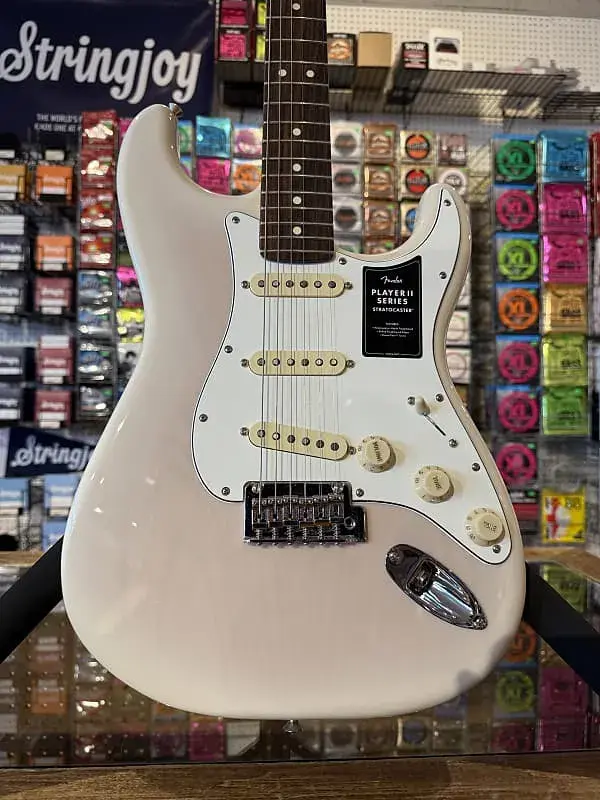 Совершенно новый пример Fender Player II Stratocaster (с уменьшением веса), выполненный в элегантном цвете белая блондинка.