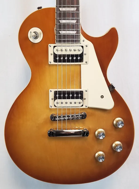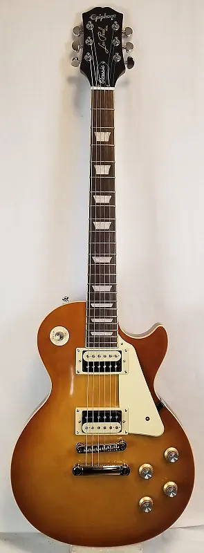 Les Paul Classic из новой коллекции Epiphone Modern представляет собой одну из самых популярных электрогитар в мире по доступной цене. Характерный дизайн конца 50-х годов Les Paul Standard с открытыми «зебра» хамбакерами Alnico Classic PRO с электроникой CTS, функцией разделения катушек и переключением фазы, а также колками Grover Rotomatic. Доступен в цветах Ebony, Honeyburst и Heritage Cherry Sunburst.