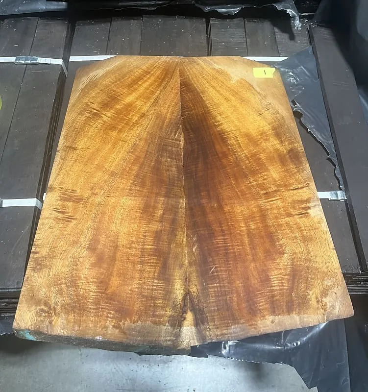 Gibson Les Paul Custom 2025 с верхом из koa - натуральный глянец, золотая фурнитура