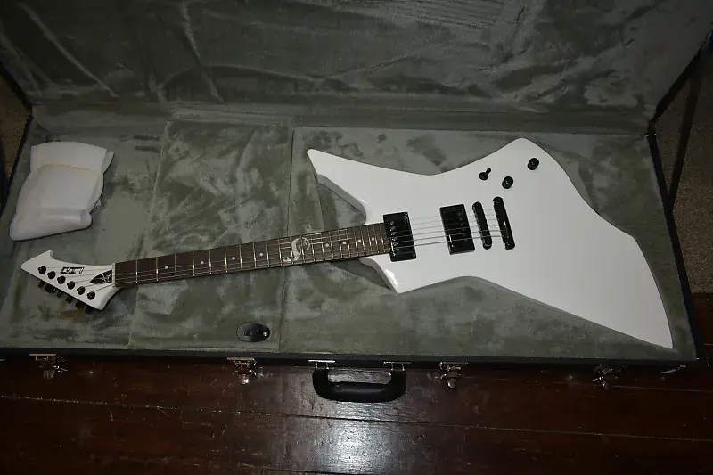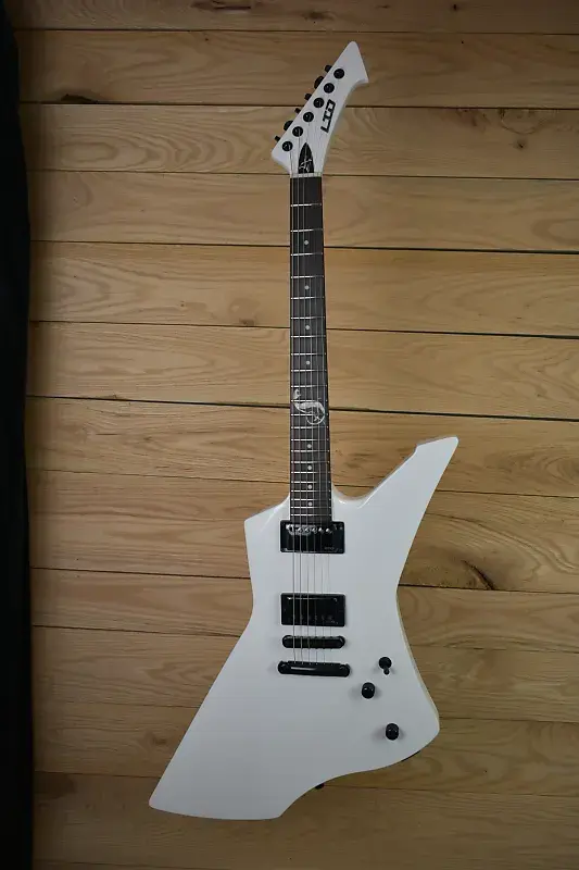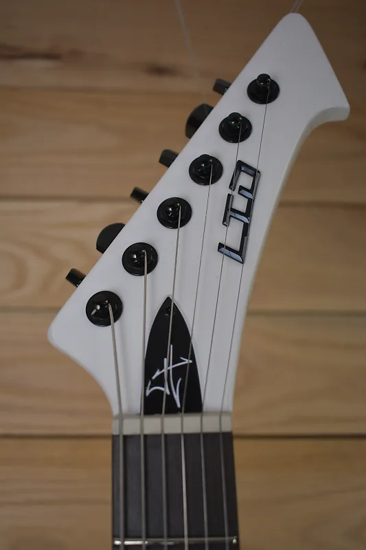 LTD Snakebyte - это модель серии Signature Джеймса Хэтфилда, фронтмена Metallica и одного из самых уважаемых в мире ритм-гитаристов в любом жанре. Snakebyte был создан на основе оригинального дизайна самого Джеймса. Он имеет конструкцию с сет-грифом в масштабе 24,75 дюйма, с корпусом из красного дерева и трехкомпонентным грифом из красного дерева с грифом из черного дерева и 22 экстра-джамбо ладами со змеиной инкрустацией на 12-м ладу. LTD Snakebyte оснащен активными звукоснимателями EMG JH SET собственного производства Джеймса и включает в себя бридж и струнодержатель TOM с блокировкой TonePros.