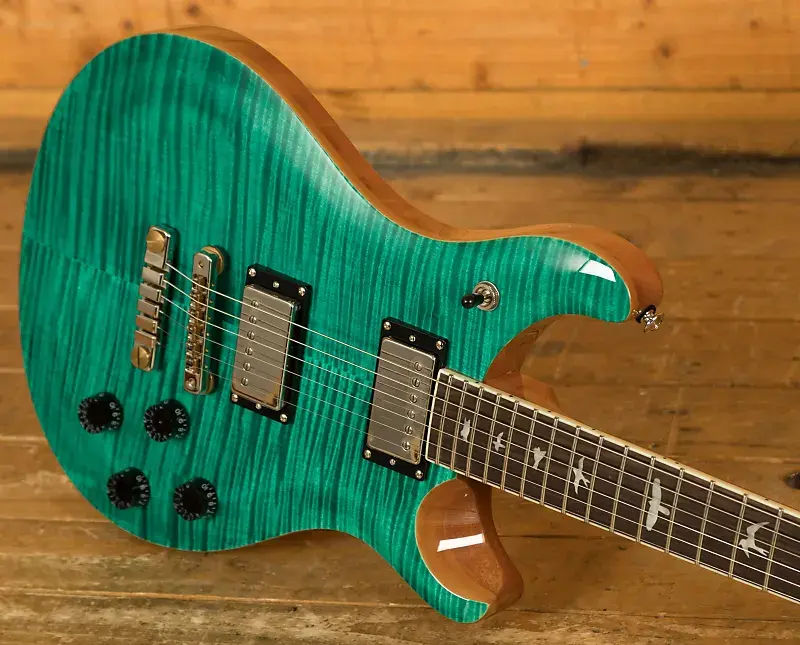 Кроме того, двухсекционный цинковый мост и тюнеры в винтажном стиле усиливают ретро-атмосферу этого инструмента, в то время как классическая форма корпуса PRS и знаковые инкрустации в виде птиц придают ему современный штрих.