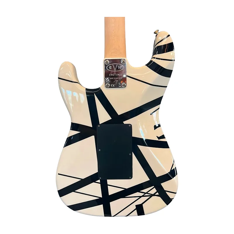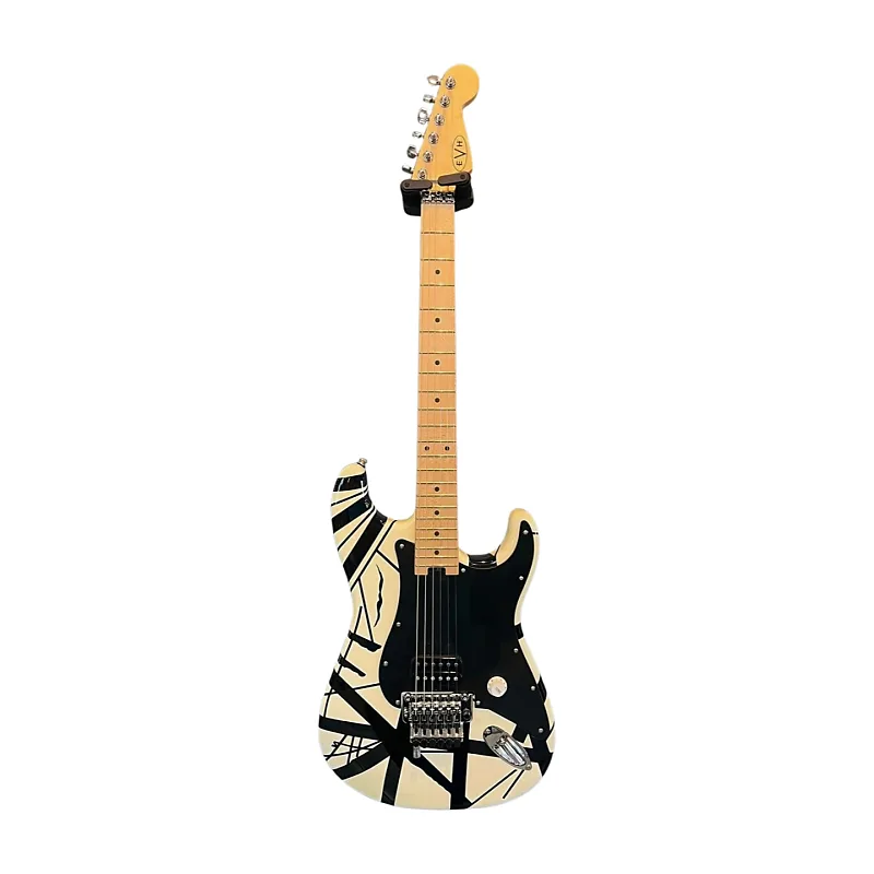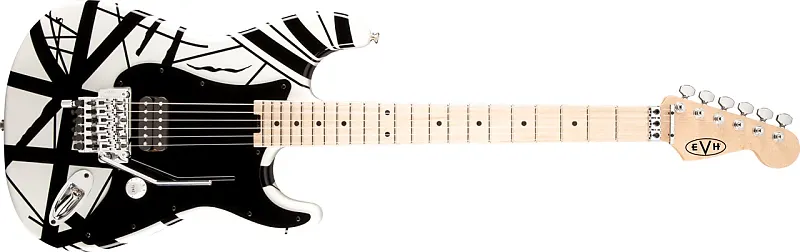 Эти гитары серии Striped Series оснащены мощным единственным хамбакером Wolfgang на фиксированном мосту, а также одной юбочной ручкой регулировки громкости в Strat-стиле (обозначенной как "tone"), которая содержит потенциометр EVH Bourns с низким трением 500K и схемой treble bleed, с однослойной черной насадкой. пикгард (только для модели White with Black Stripes), фиксатор струны и стопорная гайка Floyd Rose, стопорное тремоло Floyd Rose от EVH с EVH D-Tuna, литые тюнеры EVH, хромированная фурнитура, кнопки ремешка в винтажном стиле, рифовая пластина EVH и лицензионная головка грифа Fender Strat. Модель White with Black Stripes также оснащена выходным разъемом для верхнего монтажа.