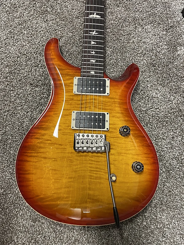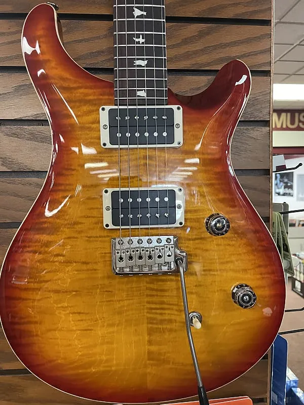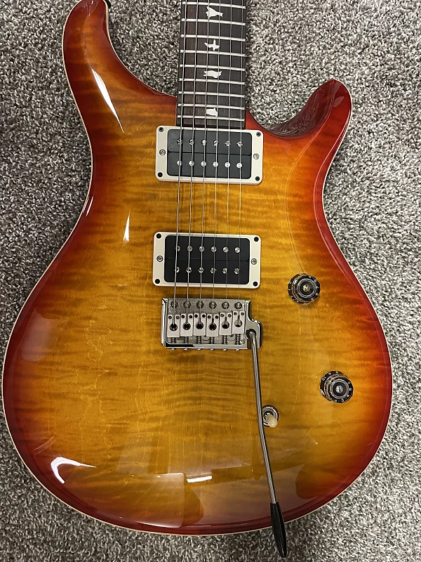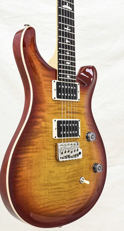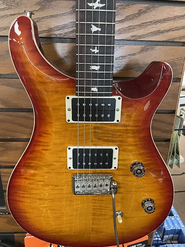 ХАРАКТЕРИСТИКИТЕЛО Корпус: цельный, верхняя дека: клен, задняя дека: махагони, верхняя резьба: скрипка, финиш: глянцевый нитро. Гриф: количество ладов: 24, длина мензуры: 25", древесина грифа: клен, конструкция грифа: состыковка внахлест, брусья: двойного действия PRS, форма грифа: Pattern Thin, глубина грифа на 1/2 ладу: 53/64", глубина грифа на 12 1/2 ладу: 57/64", ширина грифа у верхнего порожка: 1 11/16", ширина грифа у корпуса: 2 1/4", накладка: палисандр, радиус накладки: 10", инкрустация: птицы, логотип на голове грифа: Signature, наклейка. Сборка грифа и корпуса: тип сборки: на болтах. Механика и фурнитура: тремоло PRS, фирменное, литое, колки с блокировкой PRS Low Mass, фурнитура: никель, порожек: PRS, накладка на брусья: "CE". Электроника: сингл PRS 85/15 для высоких частот, PRS 85/15 для низких частот, регуляторы: громкость и регулятор тембра Push/Pull с 3-позиционным переключателем звукоснимателей. Дополнительно: струны PRS Signature 10-46, стандартная настройка E, A, D, G, B, E, кейс: сумка для гитары.