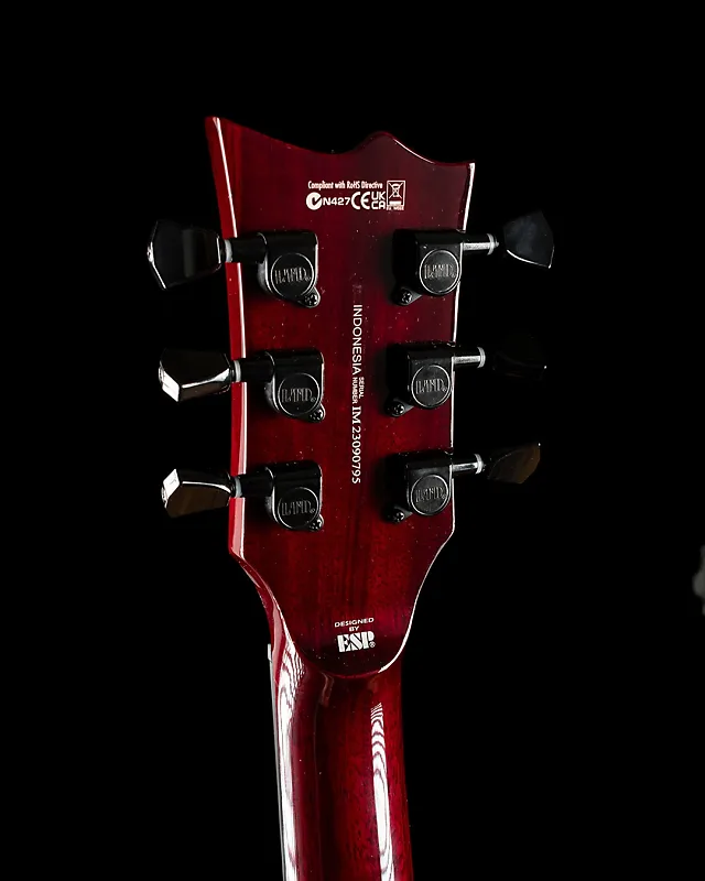 «FT» в LTD EC-201FT означает «плоский верх», и это то, что это такое: великолепно выглядящая, обтекаемая гитара в стиле EC, созданная для жесткого рока. Он предлагает корпус из красного дерева с традиционной конструкцией грифа в масштабе 24,75 дюйма, а также тонкий U-образный гриф из трех частей из красного дерева. Обжаренный гриф из жатоба EC-201FT имеет черную окантовку, инкрустации из перламутроидных блоков и 22 экстра-джамбо лада. Многослойный черный медиатор дополняет внешний вид этой великолепной, недорогой гитары. Компоненты этой гитары включают бридж в стиле TOM со сквозным корпусом струн, тюнеры LTD и один горячий, пробивной хамбакер ESP LH-150B, который можно разлить катушку с помощью двухтактного регулятора на общей громкости.