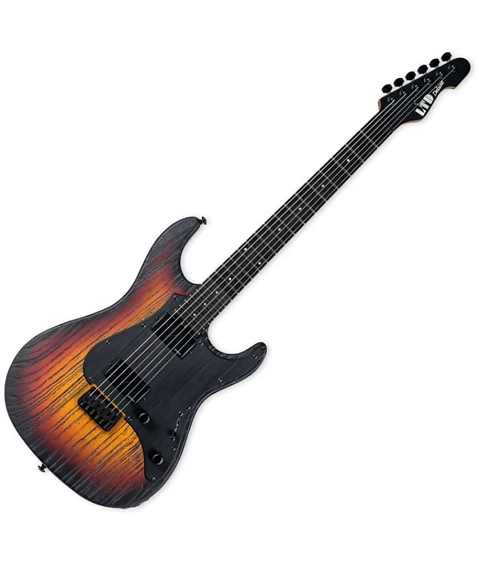 Фурнитура гитары выполнена в элегантном черном цвете, включая черный костьевой порожек, черную щитовую накладку и куполообразные регуляторы. Мост Hipshot hardtail с конструкцией string-thru-body обеспечивает исключительную стабильность настройки и сустейн, в то время как блокирующие колки LTD позволяют быстро менять струны. надежный.