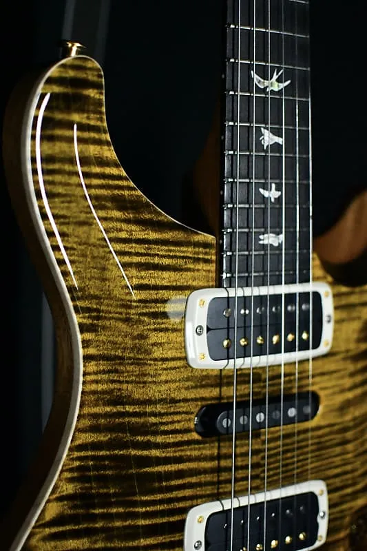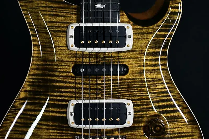Дополнительные характеристики включают кленовую верхнюю дека и корпус из красного дерева, гриф из красного дерева Pattern с накладкой из палисандра, кость для порожка, а также запатентованную PRS систему Gen III.