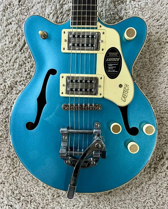 Модель G2655T Streamliner Center Block Jr. Double-Cut с Bigsby ворвалась в современную эру с мощным звуком и стилем в компактной упаковке. Элегантная G2655T создана для гитариста, который требует от инструмента большего, чем обыденность - больше производительности, больше стиля и, что самое важное, большей громкости - при этом сохраняя все, что вы ожидаете от Gretsch.