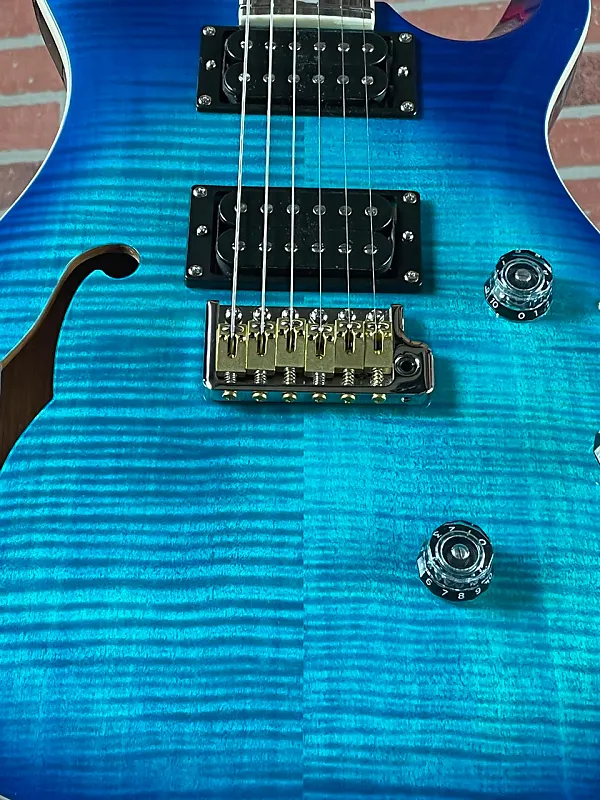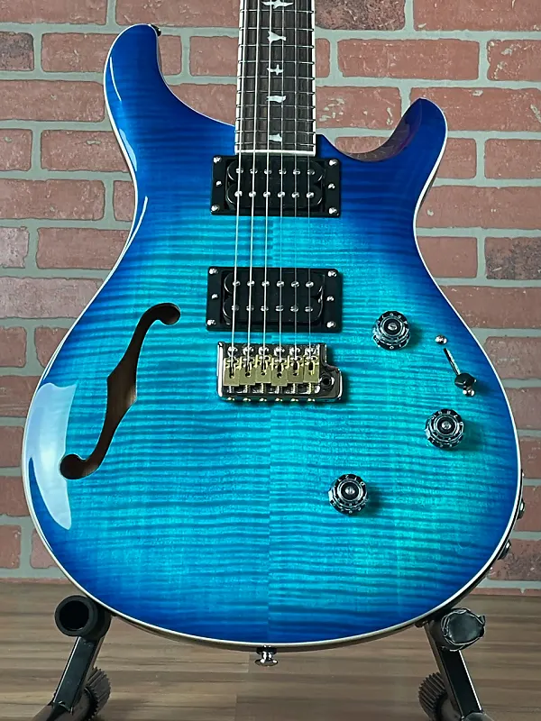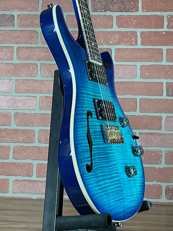 Полузамкнутый корпус имеет красивую топовую пластину из клена с эффектом пламени с одним F-образным резонаторным отверстием на массиве махагони, создавая великолепный визуальный вид и усиливая резонанс и естественное сустейн. Мелкая скульптура в форме скрипки обеспечивает комфорт при сохранении фирменного дизайна PRS, дополненного элегантной окантовкой головы грифа и ладового поля для премиального внешнего вида и ощущения.