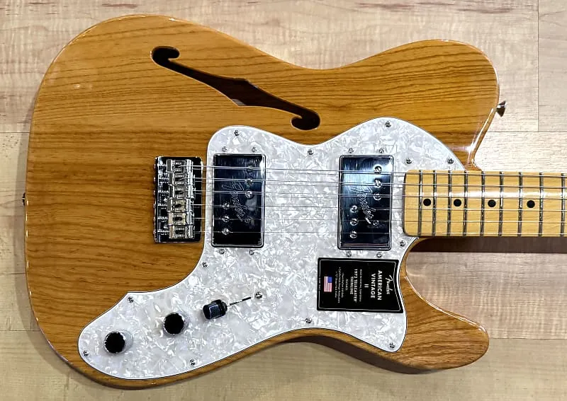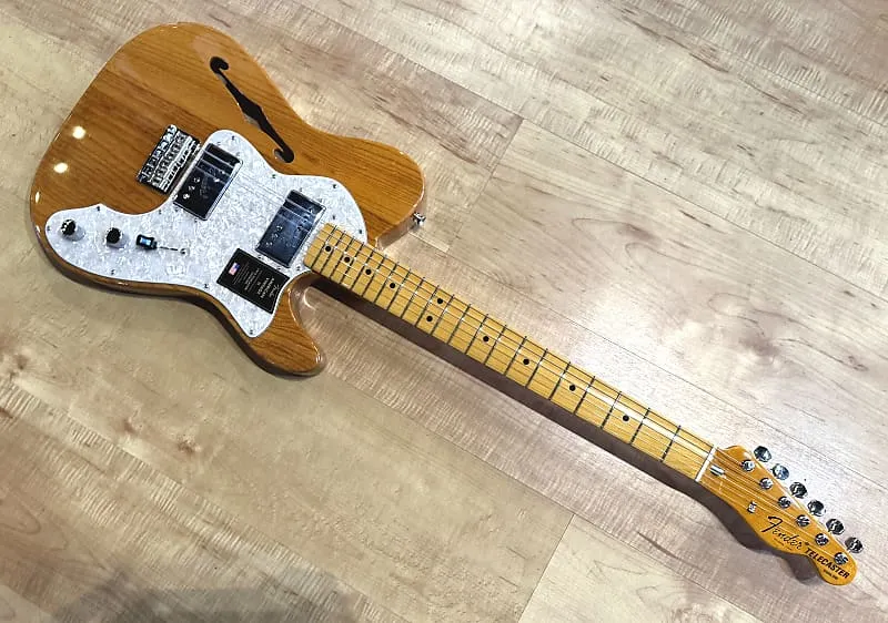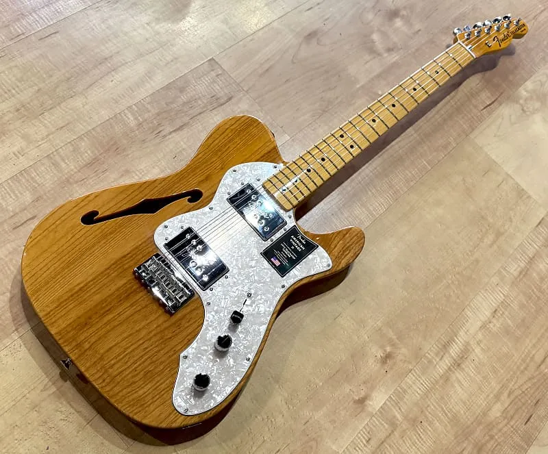 С грифом из клена твердой породы в форме «C», American Vintage II 1972 Telecaster Thinline играет как мечта благодаря радиусу грифа 7,25” и высоким винтажным ладам. Чтобы создать аутентичные хамбакеры Wide-Range, мы воссоздали магниты CuNiFe - важный элемент для воссоздания звучания оригиналов. Характерно для производства 1972 года, эта Thinline оснащена удобной гайкой стержня регулировки в стиле «Bullet», креплением грифа на трех винтах с механизмом Micro-Tilt, тюнерами с маркировкой «F», шестиседельной жесткой конструкцией с корпусом через струны и изогнутыми стальными седлами, а также предлагается в цветах Aged Natural, 3-Color Sunburst и Lake Placid Blue на полу-пустотелом корпусе из ясеня.