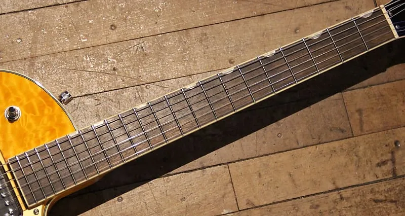 Его двойные хамбакеры Black Top Broad'Tron обеспечивают смелый, динамичный и артикулированный тон с улучшенным звуковым ударом. Комбинация индивидуальных регуляторов громкости, мастер-тона и общей громкости со схемой сброса высоких частот позволяет гибко использовать звуковую мощь этого инструмента.