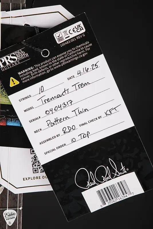 Дополнительные элементы включают фирменный логотип PRS на головке грифа, крышку стержня «Tremonti» и заводские струны PRS Signature 10-46, обеспечивающие сбалансированное натяжение и ощущение, подходящие для широкого диапазона стилей. Двухдействующий брус грифового стержня PRS добавляет долговременную настраиваемость и стабильность грифа, делая эту гитару готовой к сцене и студии прямо из кейса.