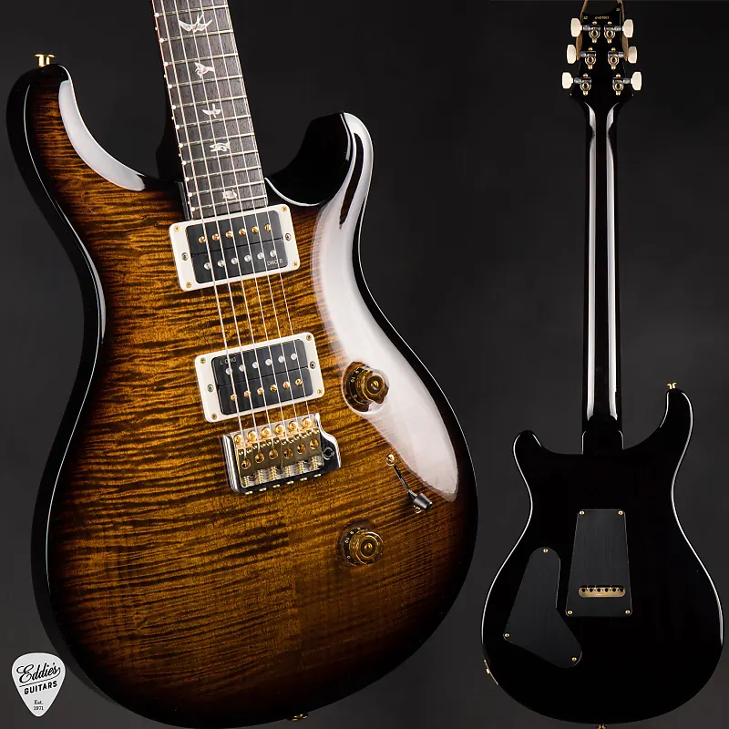 Paul Reed Smith Custom 24 в цвете Black Gold Wraparound Burst является вершиной современного мастерства изготовления электрогитар, предлагая идеальное сочетание впечатляющей эстетики, усовершенствованной удобности игры и универсального звучания. Эта модель воплощает суть философии дизайна PRS - сочетание проверенных временем техник с инновационными решениями - делая ее любимой среди профессиональных музыкантов и коллекционеров.