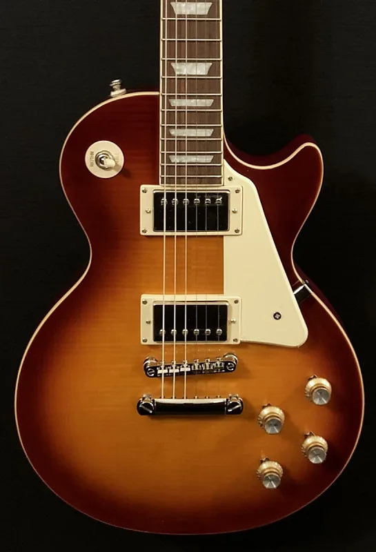 • Холодный чай, топ из клена AA Flame, корпус из красного дерева, тонкий конус 60-х годов С-образный гриф из махагони, накладка из индийского лавра с переплетенным радиусом 12 дюймов с перламутроидными трапециевидными вставками и средними ладами джамбо, длина мензуры 24,75 дюйма, ширина порожка 1,69 дюйма, бридж Epiphone ProBucker #3 и нековые звукосниматели ProBucker #2, 3-позиционное переключение с регуляторами громкости и тембра для каждого звучок, мост Epiphone LockTone tune-o-matic с приостановкой струн, колки Grover Rotomatic, футляр не входит в комплект