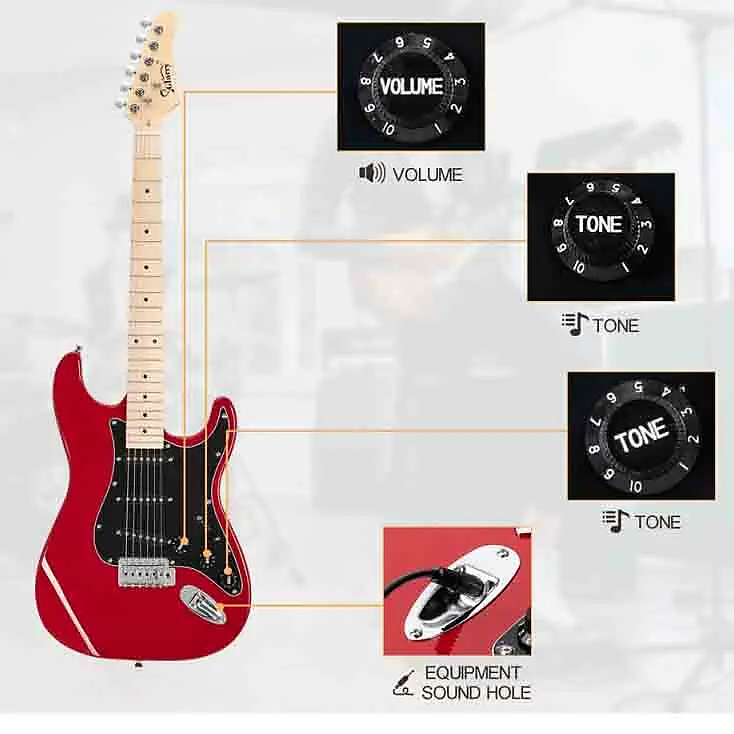 Наша гитара оснащена классической и простой схемой управления: 5-позиционный переключатель, два регулятора тембра и один регулятор громкости, обеспечивая интуитивный и легкий доступ к вашему звуку.