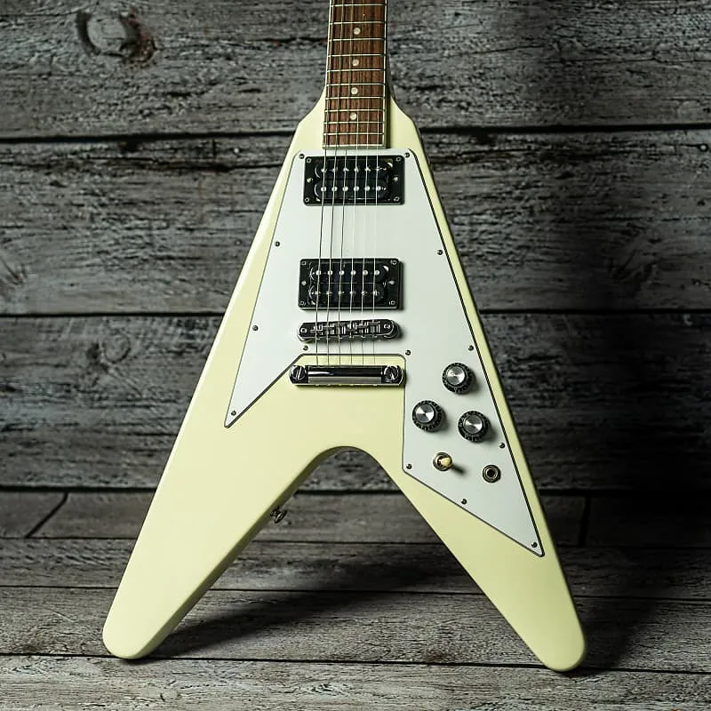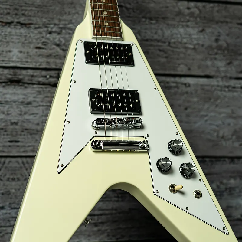 Легендарная классика 70-х готова снова взлететь. С накладкой из палисандра на грифе, грифом SlimTaper и парой открытых хамбакеров '70s Tribute, подключенных с помощью конденсаторов Orange Drop, этот Flying V готов воспроизвести все классические тона эпохи. Доступен в отделке Classic White с головкой грифа в цвет корпуса, серебристые отражающие ручки и хромированная фурнитура делают эту гитару готовой зажечь любую арену.