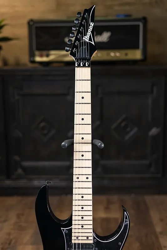 С длиной мензуры 25,5 дюймов, RG550BK обеспечивает привычное ощущение игры, а система тремоло Ibanez Edge с блокировкой гарантирует стабильность настройки во время интенсивных выступлений. Конфигурация звукоснимателей HSH включает в себя хамбакер V7 у грифа (пассивный/керамический), сингл S1 в середине (пассивный/алнико) и хамбакер V8 у бриджа (пассивный/алнико), что предоставляет широкий спектр тональных возможностей. Контроллеры включают мастер-громкость, мастер-тон и 5-позиционный переключатель звукоснимателей для точной настройки звука.