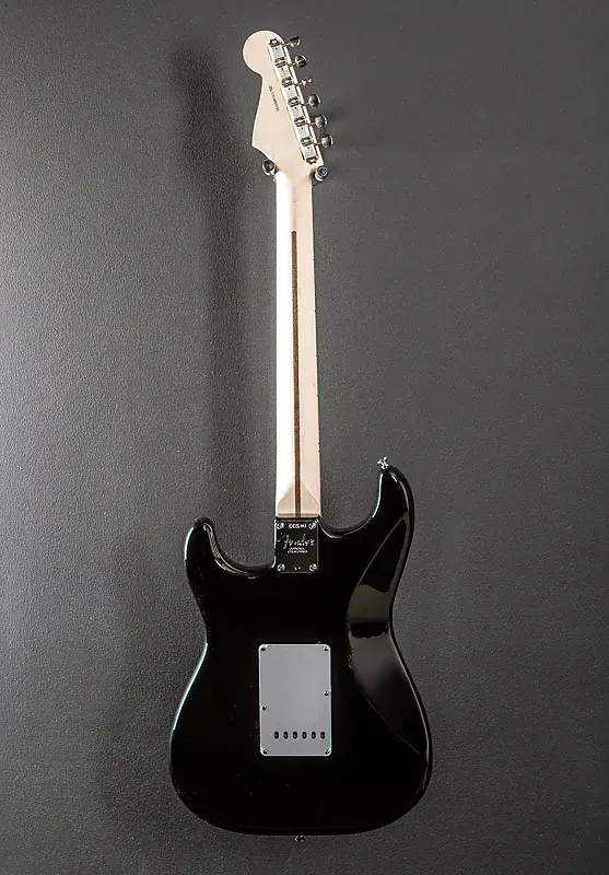 Черная, глянцевая уретановая отделка корпуса, корпус из ольхи, шея из клена мягкой V-образной формы с радиусом 9,5 дюймов, гриф из клена с ладовым порожком винтажного размера, длина мензуры 25,5 дюймов, ширина Nut 1,650 дюйма, звукосниматели Vintage Noiseless single coil Strat, 5-позиционный переключатель с главным регулятором громкости, регулятором тона 1, мастер TBX и регулятором тона 2 с активным усилением средних частот от 0 до 25 дБ, заблокированная американская винтажная синхронизированная тремоло с изогнутыми стальными седлами, тюнеры винтажного стиля, вес 7,8 фунтов, в комплекте с кейсом из твида.