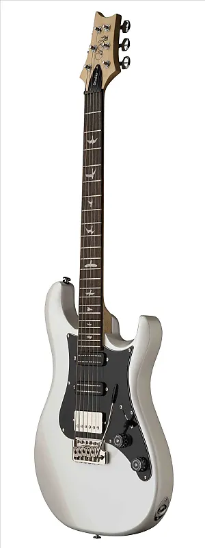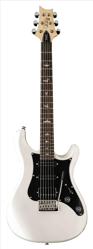 Корпус электрогитары PRS SE Studio Standard Pearl White с характерным двойным вырезом PRS выполнен из махагона. К прикрученному кленовому грифу с профилем Wide Thin приклеен пальисандровый накладка, оснащенная двадцатью двумя ладами. Для облегчения ориентировки на грифе предусмотрены позиционные марки PRS в виде силуэтов птиц.