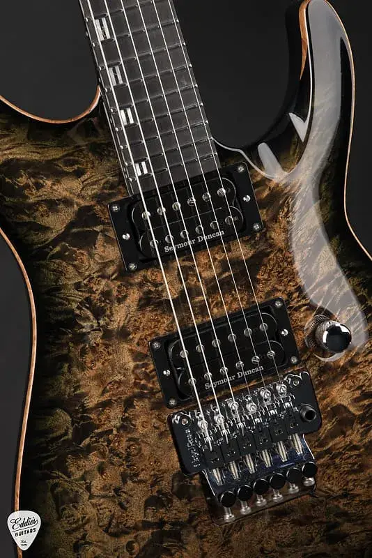 Каждый инструмент изготовлен вручную, по одному за раз, всемирно известными мастерами-лютнерами в ESP Custom Shop в Японии. Серия ESP Original Series Horizon FR CTM предлагает все, что вам может понадобиться для профессиональной игры на гитаре. Гитара ESP Original Series Horizon NT CTM имеет конструкцию set-thru с мензурой 25,5 дюйма, корпус выполнен из редкой махагони Гондураса с верхней декой из фигурного клена в эффектной отделке See Thru Black Burst, а соединяется с трехчастной грифовой частью из твердого клена и накладкой на гриф из черного дерева. Компоненты этой гитары не имеют равных и включают необработанный костяной порожек, лады Jescar из никеля/серебра, крепления для ремня ESP, блокирующие колки Gotoh и для максимального выразительного звучания - мост Floyd Rose Original. Звуки на этой гитаре формируют хамбэки Seymour Duncan Custom Shop ’59/Jazz Hybrid и '59/JB Hybrid, которые обеспечивают плотный низ, четкие средние частоты и насыщенный верх с достаточной яркостью, а катушки можно разделять с помощью переключателя push-pull. Это богатая тональная палитра делает ESP Horizon NT Custom - отличный выбор для любого стиля музыки, от прогрессивного рока до попа, металла и далее. В комплект входит роскошный жесткий чехол.