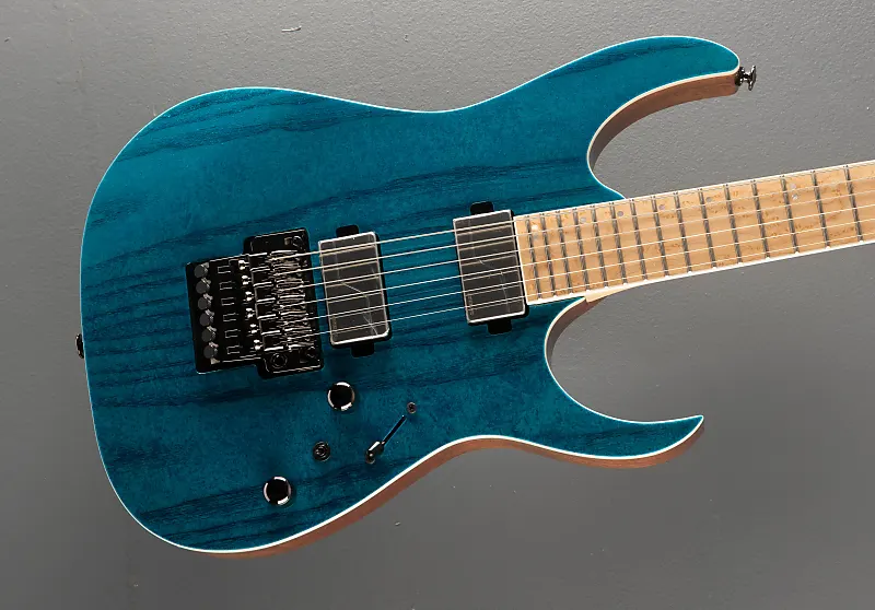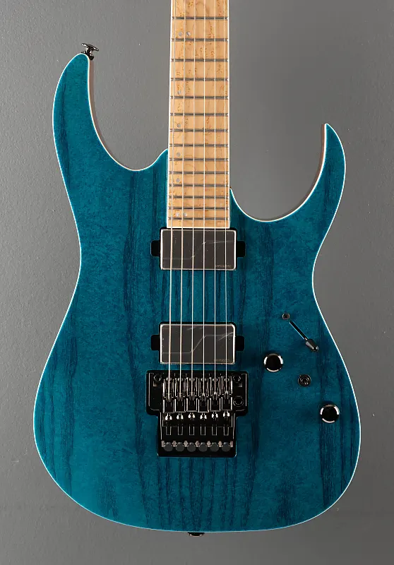 Frozen Ocean, сделано в Японии, верхняя дека из ясеня, корпус из африканского махагони, пятисекционный гриф Super Wizard HP из клена и венге, гриф с радиусом 16,9 дюйма с накладкой из кленового дерева Birdseye, инкрустация из перламутровых точек смещенного типа и джамбо-ладовые пружины из нержавеющей стали, мензура 25,5 дюйма, ширина порожка 1 11/16 дюйма, активные хамбакеры Fishman Fluence Modern керамические на бридже и у грифа, 3-позиционный переключатель с мастер-громкостью и регулятором тембра плюс переключатель звучания Fishman Fluence, тремоло Lo-Pro Edge с блокировкой и колки Gotoh с отливкой и закрытым механизмом, вес 9,9 фунта, в комплекте жесткий кейс