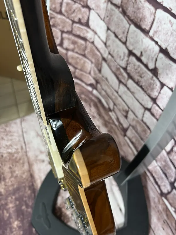 - Инкрустация на головке грифа: Ziricote с отделкой Curly Maple