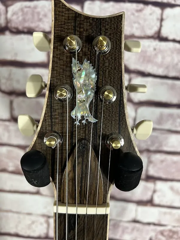 - Фурнитура: Никелевый мост PRS 2PC Stoptail, тюнинговые колки PRS винтажного стиля без фиксатора с крыловидными кнопками, костяной порожек и накладка для стержня грифа из зирикота