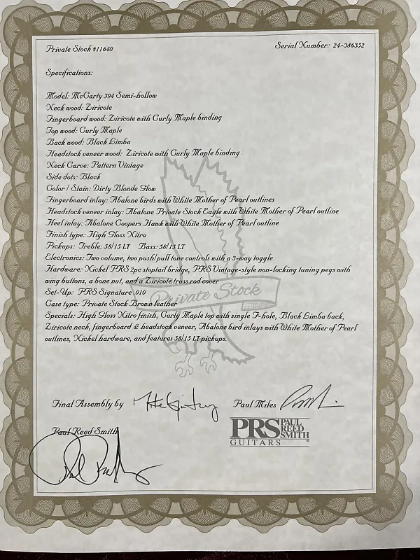 - Древесина для этой гитары была выбрана из хранилища PRS Private Stock.