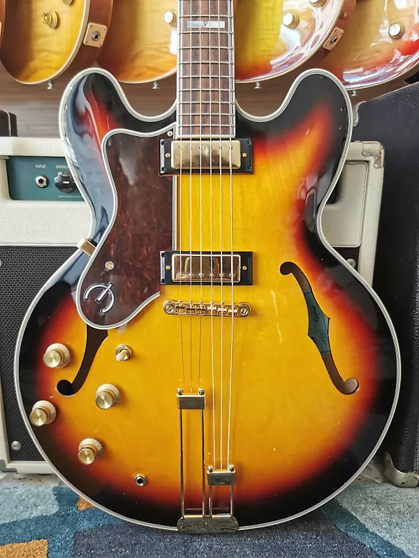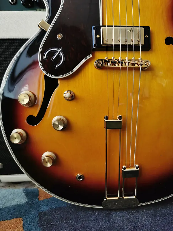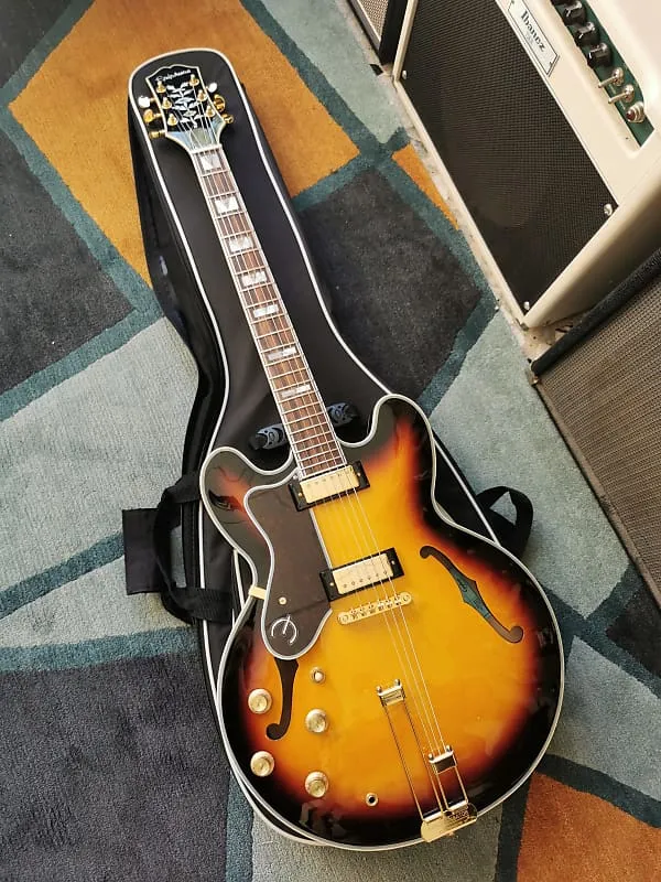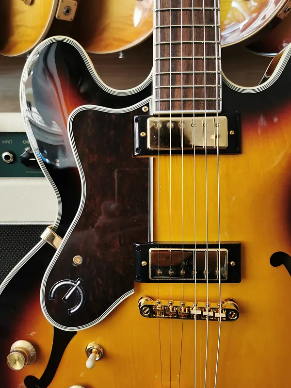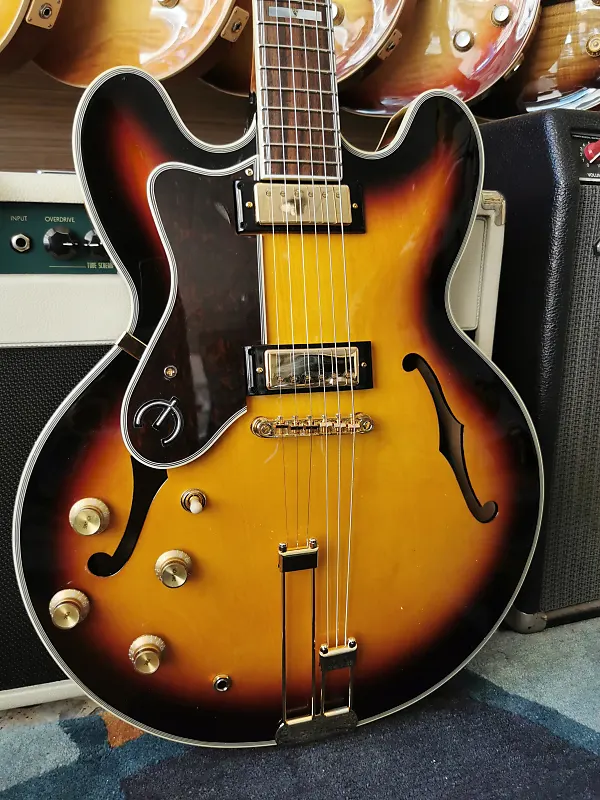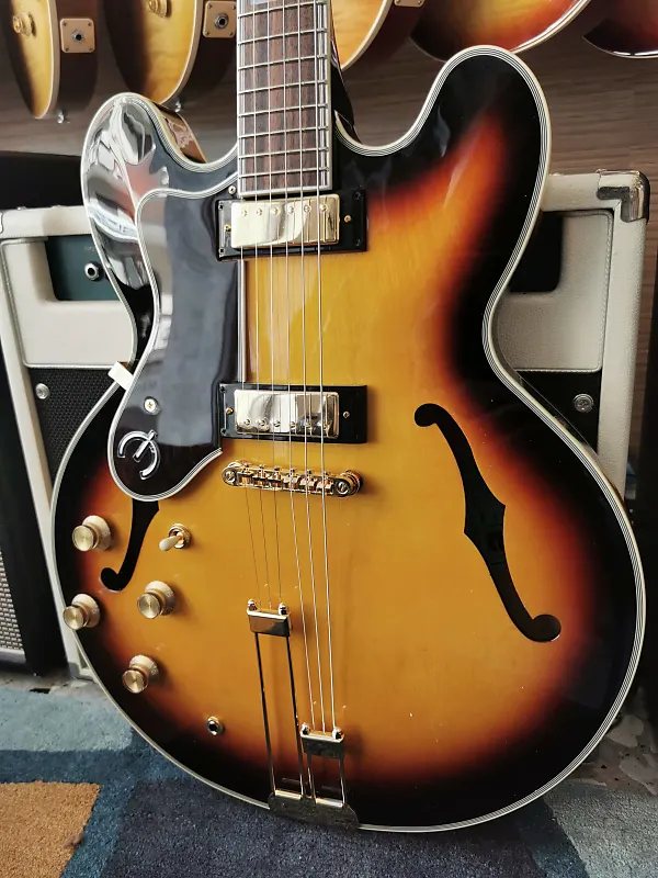 Одна из самых легендарных гитар Epiphone, Sheraton возвращается в версиях Vintage Sunburst и Natural. Этот элегантный инструмент оснащен полуакустическим корпусом, выполненным из многослойного клена, с центральным кленовым блоком для снижения обратной связи. Гриф из махагона с 22 ладами имеет накладку из индийской лавровой древесины с инкрустацией из перламутра и треугольников из абалона. Ограниченная голова грифа украшена историческим логотипом Epiphone и деревом жизни из перламутра. Мини-хамбакеры Epiphone ProBucker обеспечивают широкий динамический диапазон, подходящий практически для любого музыкального стиля. Золотая фурнитура, включая хвостовой блок Frequensator Split Trapeze в винтажном стиле, добавляет простой и вечный эстетический вид этой легенде Epiphone.