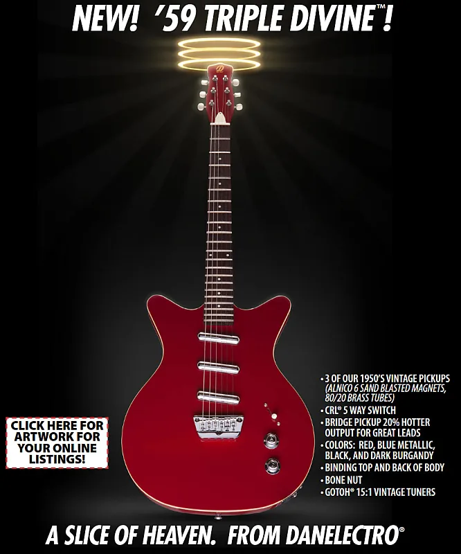 Этот кусочек рая оснащен 3 нашими звукоснимателями Vintage 50’s Lipstick. Бриджевый звукосниматель имеет на 20% более мощный выход для отличных соло. Трипл Дивайн также оснащена переключателем CRL на 5 положений, передним и задним обрамлением, костяным порожком и колками Gotoh vintage 15:1. Наша лучшая Danelectro за всю историю!
