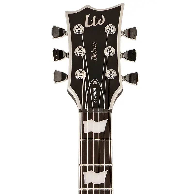 EC-1000 ET/BB/BLKS, ESP LTD Deluxe Series Eclipse, мост Evertune F Model, масштаб 24,75”, корпус из махагона, верхняя дека из клена, 3-частная шейка из махагона, грифовая накладка из маккасарского эбена, 24 струны из нержавеющей стали, экстра-джамбо, активные звукосниматели EMG 81 & EMG 60TW-R, колки Grover, черная фурнитура, отделка Black Satin, утолщенная металлическая серебряная окантовка