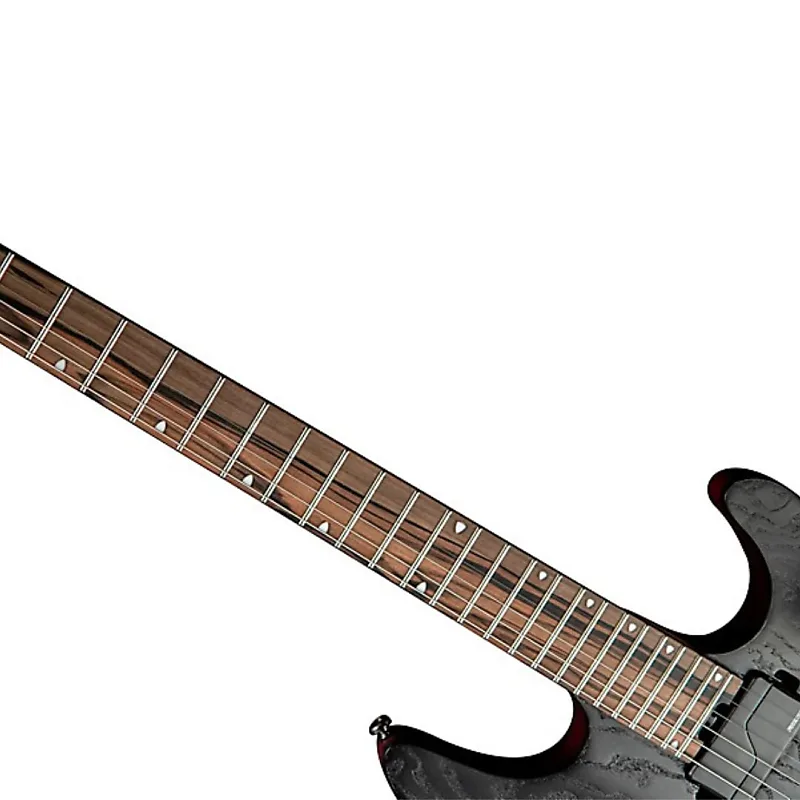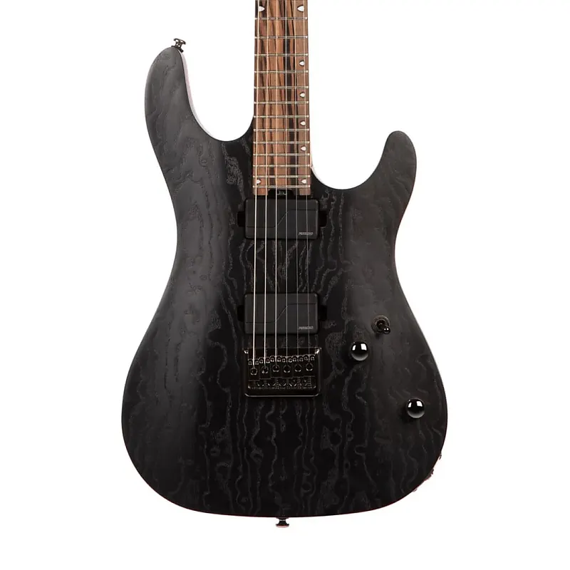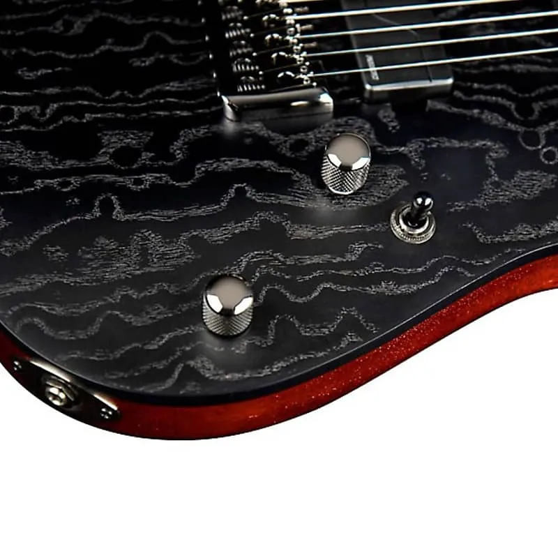 Гриф выполнен из пятислойного клена и пурпурного дерева, что делает его прочным и стабильным, с легким сатиновым покрытием, позволяющим легко скользить по 24-лютневой накладке из эбена Macassar. Накладка имеет плоский радиус 15,75" и мини-вставки в форме капли, добавляющие элегантности элегантному дизайну. Колковая головка совпадает с корпусом по текстуре и оснащена замками для настройки, которые удерживают строй стабильным и облегчают замену струн.