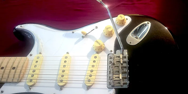 Это одна из моделей из кастомного магазина. Классическая модель Эрика с грифом из клена. Пикапы третьего поколения без шума. Настоящее удовольствие играть!