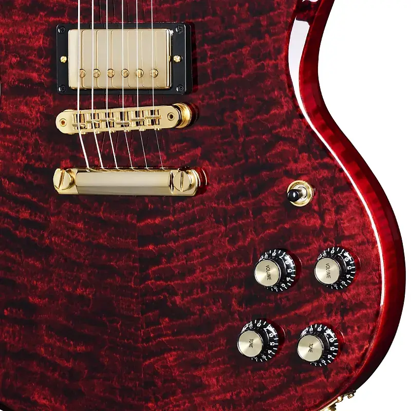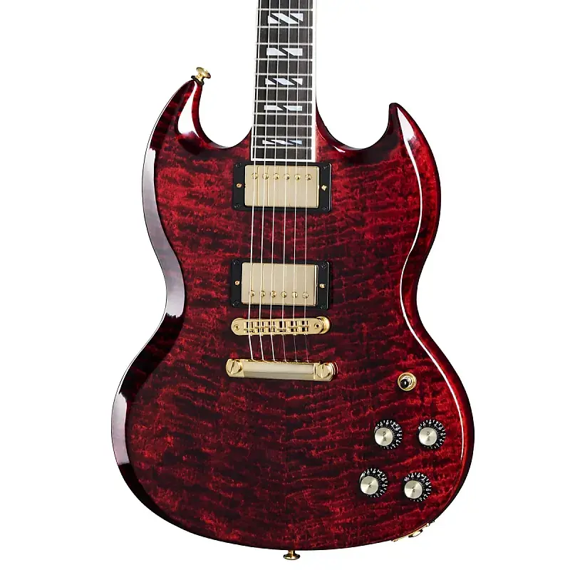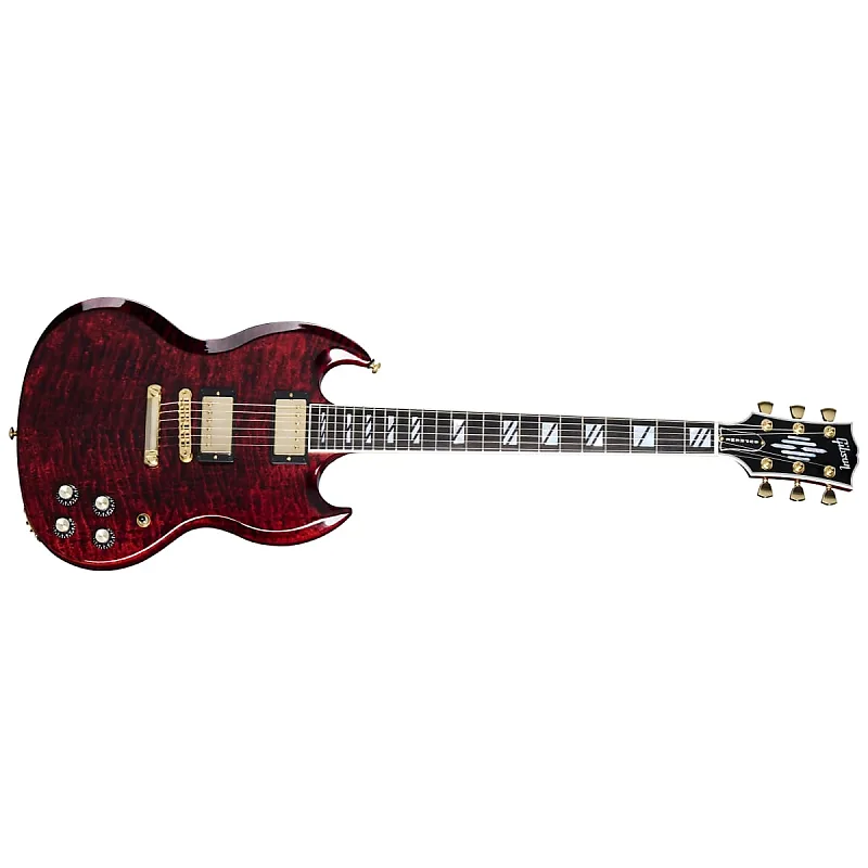 Gibson с радостью объявляет о возвращении модели SG Supreme. С обновленным набором характеристик она обязательно затмит все остальные модели и станет одной из самых захватывающих новинок года. Гитара оснащена красивой верхней декой из клена AAA-фигурного (обычный клен на модели Gibson с тремя звукоснимателями) на корпусе из махагони. Гриф из махагони имеет накладку из эбена с комбинированным радиусом, 24 средние джамбо лады и вставки из перламутра Super Split Block. Голова грифа украшена эффектной новой инкрустацией из перламутра «Chandelier Inlay», вдохновленной дизайном 1940-х годов, обнаруженным в архивах Gibson. Звукосниматели Burstbucker Pro и Burstbucker Pro + оснащены управляющими регуляторами громкости с функцией push/pull для раздельного подключения катушек, а также индивидуальными регуляторами тембра (главный регулятор тембра на эксклюзивной модели с тремя звукоснимателями). Три великолепных отделки элегантно подчеркиваются золотой фурнитурой, что делает эту гитару не только отлично звучащий и чрезвычайно гибкий инструмент, а также исключительно красиво выглядящая современная рок-машина. В комплект также входит жесткий футляр.