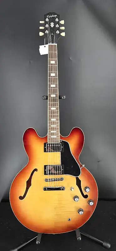 Гитара Epiphone «Inspired by Gibson» ES-335 с рисунком отдает дань вечной модели ES-335, тонкослойной полузакрытой арchtop-гитаре, которая принесла класс арchtop в эпоху рока. Оснащена массивным кленовым центральным бруском для увеличения сустейна и сопротивления обратной связи, с хамбакерами Alnico Classic PRO, колками Grover Rotomatic, а также кленовой шпонкой на верхней и задней частях корпуса с потрясающими глянцевыми отделками Blueberry Burst и Raspberry Tea Burst, которые обязательно привлекут внимание. Дополнительно доступен жесткий футляр или кейс EpiLite.