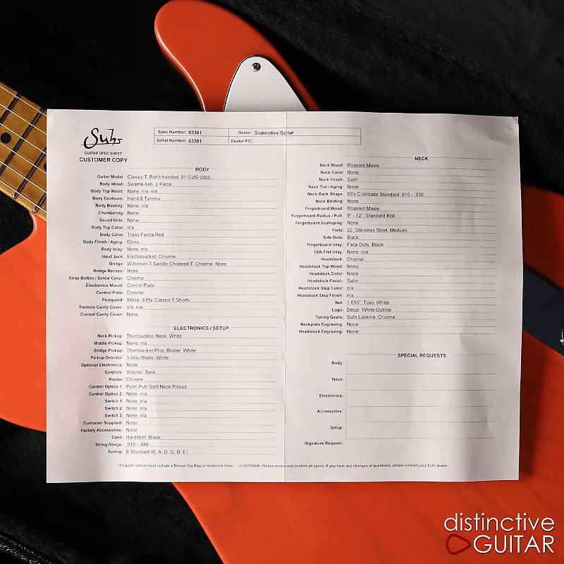 Этот Suhr Classic T Custom сочетает в себе традиционный внешний вид с современным звуком и удобством игры. Его гриф Roasted Maple и великолепная отделка Fiesta Red действительно помогают этой гитаре выделиться из толпы. Этот Swamp Ash T резонирует, когда он отключен от сети, и кричит, когда он подключен к сети, благодаря потрясающим звукоснимателям Thornbucker. Универсальность является ключевым фактором для любого T-образа, и этот делает еще один шаг вперед с помощью ручки с раздельной катушкой для некового звукоснимателя. Эта гитара идеально сочетается с вашим 5-ваттным усилителем или 100-ваттным полным стеком!
