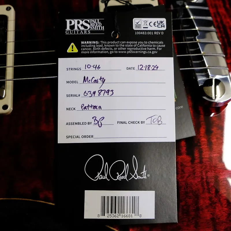 Названная в честь Теда МакКарти, одного из пионеров электрогитары и индустрии музыкальных инструментов, модель McCarty воплощает самые современные разработки PRS и отсылает к золотому веку гитары. Эта гитара в винтажном стиле оснащена грифом с окантовкой и 22 ладами Pattern, а также слегка утолщенной задней частью для улучшенного тембра и сустейна. Модель McCarty оснащена мостом PRS Stoptail с латунными вставками для дополнительной резонансности и тюнерами в винтажном стиле. Гитара PRS McCarty укомплектована сингловыми звукоснимателями McCarty LT для высоких и басов. Эти звукосниматели в винтажном стиле демонстрируют исключительную ясность и сфокусированные средние частоты. В сочетании с регулятором тембра push/pull и 3-позиционным переключателем звукоснимателей, эти звукосниматели предоставляют полный спектр тонов.