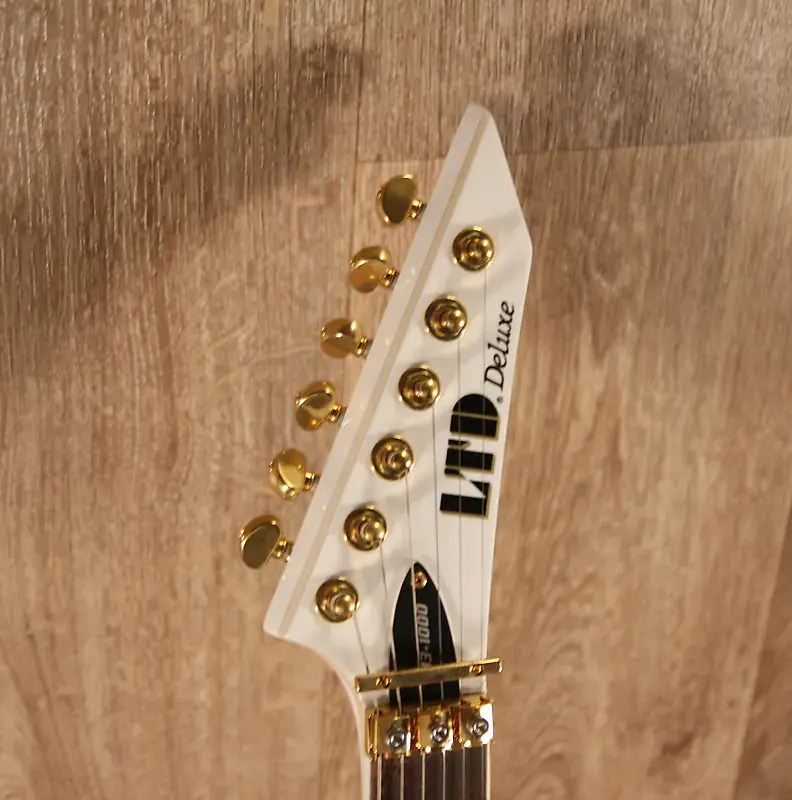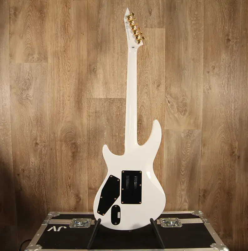 Гитары серии LTD 1000 созданы, чтобы предоставить звук, ощущения, внешний вид и качество, которые необходимы профессиональным музыкантам. H3-1000FR обладает смелыми изгибами модели ESP Horizon-3, с удлиненным и скошенным верхним рожком и укороченным нижним рожком, обеспечивающим отличную доступность к верхним ладам. Эта гитара имеет конструкцию set-thru с масштабом 25,5 дюймов, сочетая корпус из махагони с трехсекционным, ультратонким грифом из клена с комбинированным радиусом для максимальной скорости и комфорта. Также она оснащена накладкой из эбена Макассар с окантовкой, с белыми блоковыми вставками из перлоида смещенной формы и 24 дополнительными джамбо ладами из нержавеющей стали. H3-1000FR укомплектована звукоснимателем EMG 66TW в позиции у грифа, который можно разделять с помощью контроллера push-pull, обеспечивая тональный баланс: плотные, усиленные средние частоты, мощные низкие и звонкие высокие. Звукосниматель у бриджа - EMG 57 с его культовым звучанием PAF. Оба звукоснимателя установлены напрямую и имеют корпуса с золотой шлифованной отделкой, сочетающейся с золотой фурнитурой H3-1000FR.