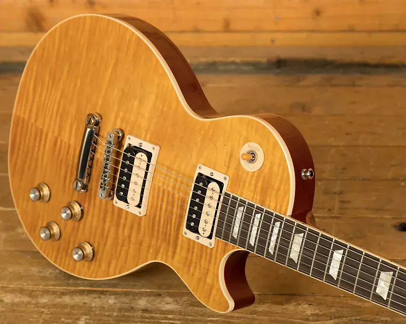 В списке культовых гитаристов, играющих на Gibson Les Paul, мало кто может превзойти Слэша. В своих кожаных штанах, с цилиндром на голове и низко посаженной Les Paul, Слэш вдохновил целое поколение гитаристов. Совсем недавно после выпуска нескольких кастомных моделей с его подписью, компания Gibson USA присоединилась к действию и представила совершенно новую модель Slash Les Paul Standard. Эти гитары представляют собой культовые инструменты, которые Слэш продолжает брать с собой на сцену ночь за ночью, и являются вершиной мастерства Gibson USA.