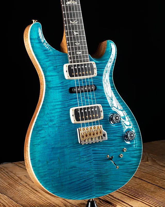 Дополнительные особенности включают кленовую верхнюю деку и заднюю деку из красного дерева, 22 лада, длину грифа 25 дюймов, гриф Pattern из красного дерева с грифовой накладкой из пальисандра, кость для грифа, и запатентированный PRS тремоло Gen III.