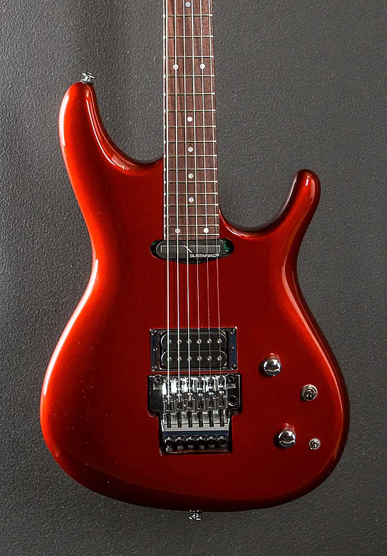 Цвет Candy Apple, глянцевое покрытие корпуса, корпус из американского липового дерева, гриф JS формы из трех частей (клен/бубинга) с титановой арматурой KTS, накладка грифа из палисандра с радиусом 10" с белыми точками и средними ладами, длина мензуры 25,5", ширина верхнего порожка 1 5/8", звукосниматели DiMarzio The Satchur8 на мосту и Sustainiac Driver на грифе, 3-позиционный переключатель с функцией push/pull для высокочастотного фильтра и громкости, push/pull для включения/выключения Sustainiac, а также 3-позиционный мини-переключатель harmonic/mix/normal, тремоло Edge с замком и литые/запечатанные колки, вес 7,2 фунта, в комплекте с чехлом.
