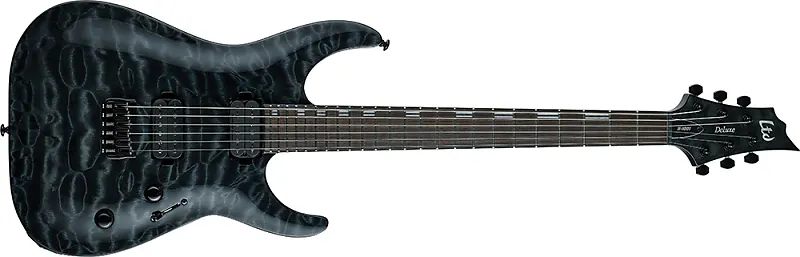 Конструкция сквозного типа - Масштаб 25,5 дюйма. Корпус из махагона с верхом из кленового шпона Quilted Manicoin. Клен 3 слоя с профилем Thin U. Гриф из эбена Macassar с 24 клавишами Extra Jumbo, радиус 14. Лада 42 мм. Черная фурнитура - мост Hipshot с системой String Thru. Колки LTD Locking. Звукосниматели Seymour Duncan Sentient/Pegasus. Струны D'Addario XL110 (.010/.013/.017/.026/.036/.046). Размеры: длина 39,00 см - глубина 9,00 см - высота 108,00 см - объем 0,037 м³. LTD # LTD H-1001 QM - See Thru Black # Гитары / Электрогитары # Серия H