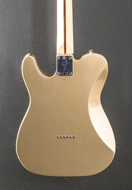 Shoreline Gold, Сделано в Мексике, корпус из ольхи с задним контуром, глянцевая отделка корпуса из полиэстера, C-образный кленовый гриф с палисандровым грифом радиусом 12 дюймов и средними джамбо-ладами, длина мензуры 25,5 дюйма, ширина порожка 1,650 дюйма, специально разработанные высокопроизводительный хамбакинг-бридж CS1 и хамбакинговые звукосниматели CS2, 3-позиционное переключение с регуляторами громкости и тембра для каждого звукоснимателя, Бридж Strat в винтажном стиле со струнной струной в винтажном стиле с Изогнутые стальные седла, тюнеры Fender в винтажном стиле «F», 7,6 фунтов, с твердым футляром