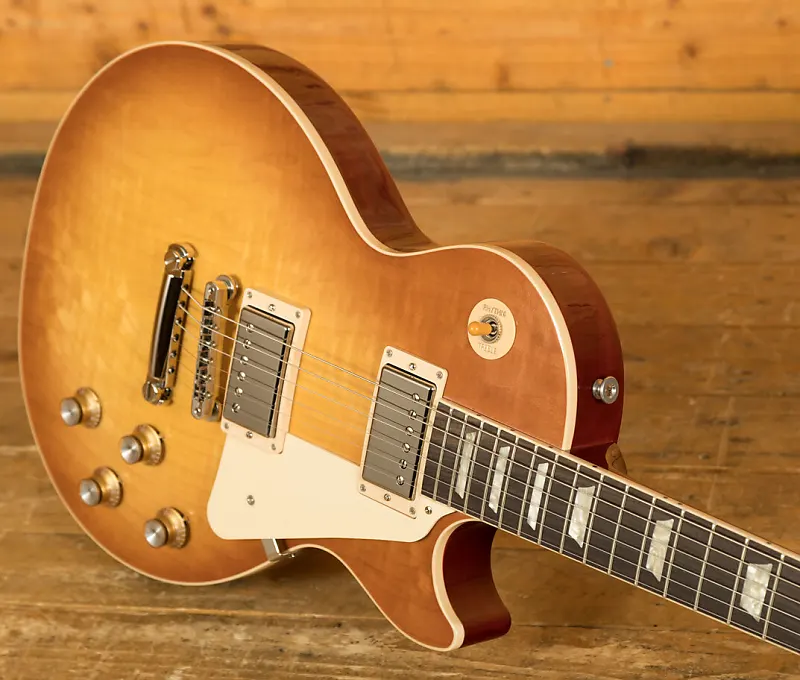 С корпусом из махагони, этот Les Paul оснащен верхней дека из клена класса AA, обеспечивая идеальное сочетание древесины для превосходного звучания. Богатая и супер резонансная, она предлагает премиальный тон и вечную эстетику, а отделка Unburst выглядит на миллион долларов и действительно позволяет дереву «дышать» и естественному тону проявляться.