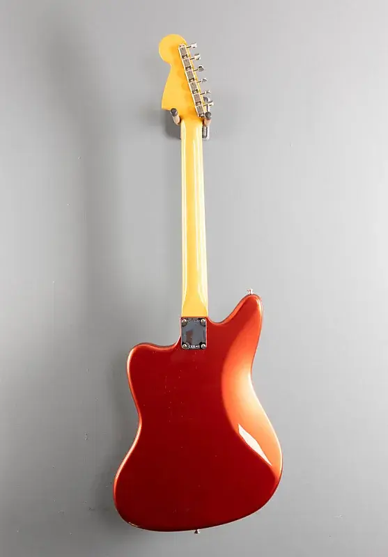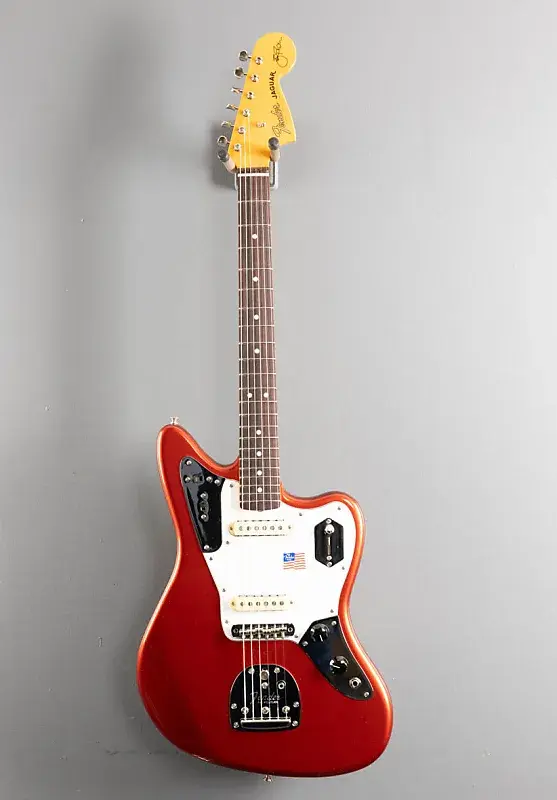 Металлик KO, лаковое покрытие глянцевой нитроцеллюлозой, корпус из ольхи, шейка из клена нестандартной формы, основанная на модели Jaguar 1965 года Джонни, с радиусом грифа 7,25 дюйма, накладкой из розового дерева и ладовыми порожками винтажного размера, длина мензуры 24 дюйма, ширина порожка 1,650 дюйма, специально намотанные звукосниматели Bare Knuckle Johnny Marr для бриджа и грифа, четыре позиции переключателя: позиция 1 - звукосниматель бриджа, позиция 2 - бридж и гриф (параллельно), позиция 3 - гриф, позиция 4 - гриф и звукосниматели бриджа (последовательно), мастер-громкость и регуляторы тембра, а также два слайд-переключателя (универсальный переключатель яркости; переключатель яркости для позиции блейда 4), бридж Jaguar с седлами Mustang и тремоло-стойка винтажного стиля, американские колки American Vintage, вес 8,1 фунта, с жестким футляром
