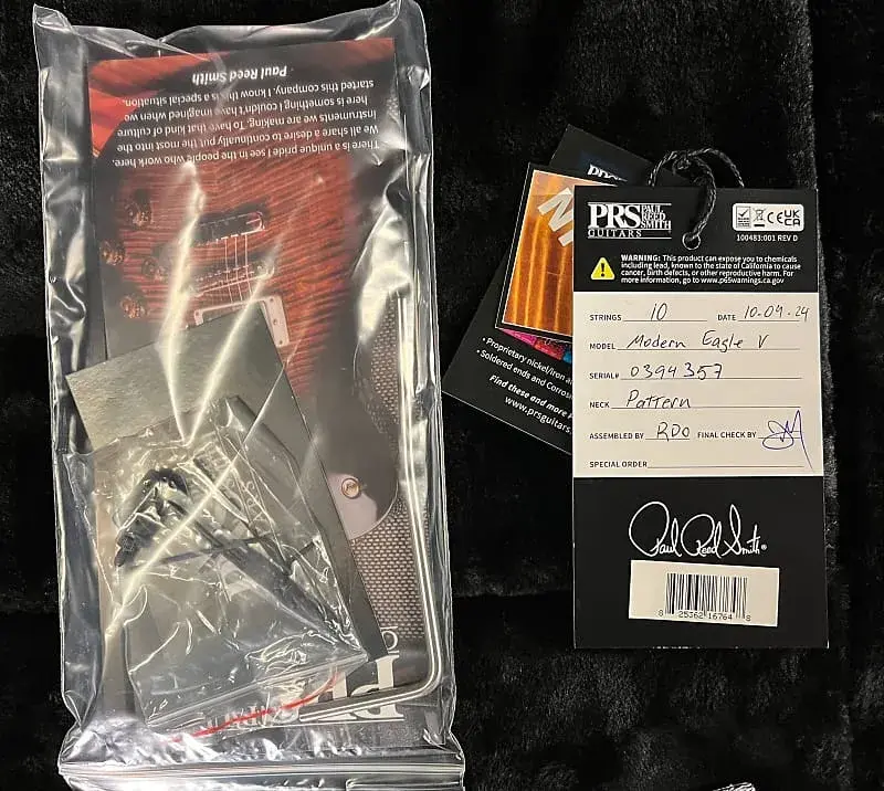 Дополнительные элементы включают кленовую накладку и заднюю панель из махагони, 22 ладовую накладку, длину мензуры 25”, гриф Pattern из махагони с накладкой из розового дерева, кость для подставки струн и фирменную PRS Gen III тремоло.