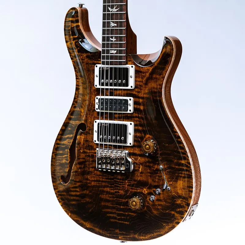 PRS Special Semi-Hollow предлагает музыкантам универсальную конфигурацию хамбакер/сингл/хамбакер с двумя хамбакерами PRS 58/15 LT и сингловым звукоснимателем PRS Narrowfield в средней позиции. Звукосниматели PRS Narrowfield передают характерный звук сингла, поэтому они легко пробиваются через микс с ясностью и энергией, не создавая гудения. В паре с 5-позиционным переключателем и двумя мини-переключателями, которые разрезают хамбакеры 58/15 LT, эта гитара способна воспроизводить множество звуков и стилей (всего двенадцать комбинаций звукоснимателей). Понизьте громкость тона, чтобы добавить рычания, увеличьте ее для блеска и наслаждайтесь исследованием этой универсальной тональной палитры. Дополнительные характеристики включают крышку из клена, заднюю часть из красного дерева, гриф из красного дерева длиной 25 дюймов и с 22 ладами, накладку из розового дерева, колки Phase III с блокировкой и фирменную систему тремоло PRS Gen III. Уровни громкости между режимами хамбакер и сингл остаются очень равномерными, а полугрифовая конструкция корпуса с одной резонаторной камерой придает приятную воздушность и глубину.