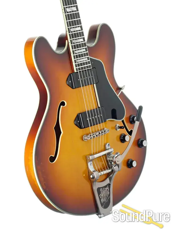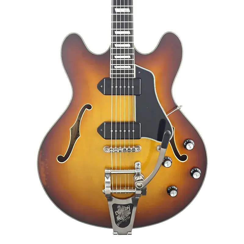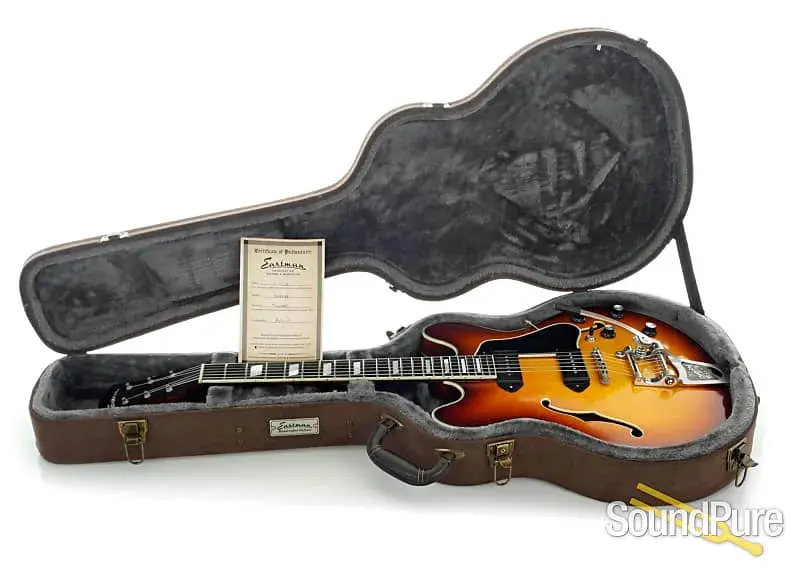Полностью полая модель Eastman с двойными звукоснимателями P-90 и системой Bigsby на базе Mojo!
