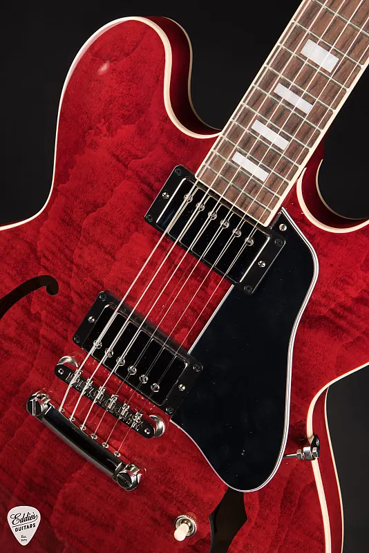 Gibson ES-335 Figured - это идеальное сочетание формы и функциональности, обеспечивающее классическое исполнение и универсальность ES-335 с невероятно красивым внешним видом высококачественного древесного клена AAA. Верхняя и задняя части корпуса окантованы, а полупустой корпус изготовлен из трехслойной древесины AAA клена/тополя/клена, при этом наружный слой из фигурного клена AAA делает эти гитары исключительно красивыми. Центральный блок из цельного клена обеспечивает исключительную устойчивость к обратной связи и увеличивает сустейн - характеристику, знаменитую у ES-335. Корпус использует распорку из пронзонного ели Адирандок для тона и прочности. Исполнителей приятно удивит легкость гитары и расширенные возможности тонального диапазона. Гриф из махагони имеет удобный профиль Rounded C и оснащен накладкой из розового дерева с окантовкой, оснащенной 22 средними джамбо ладовыми порожками и украшенной акриловыми инкрустациями в виде малых блоков. Радиус грифовой накладки 12" делает ее одинаково удобной для игры аккорды «ковбой» в первой позиции и впечатляющие соло-линии с множеством изгибов струн дальше по грифу без страха, что струны будут заглушаться. Модель ES-335 Figured оснащена премиальными компонентами, такими как наша ручная проводка с конденсаторами Orange Drop. Звукосниматели - пара новых калиброванных хамбакеров T-Type от Gibson. Плавно вращающиеся колки Vintage Deluxe, легкий алюминиевый мост ABR-1 и хвостовой стержень Stop Bar, закрепленные стальными винтами и барашковыми гайками, а также порожек Graph Tech обеспечивают отличную стабильность настройки и впечатляющее сустейн. Корпус из фигурного клена класса AAA выделяется красивыми глянцевыми лаками серии Custom Color, включая Blood Moon Burst, Deep Ocean Burst и Honey Amber. В комплект также входит жесткий футляр Gibson, чтобы защитить ES-335 Figured при хранении и транспортировке на следующий концерт.