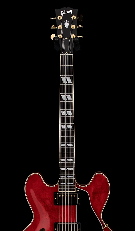 Также присутствуют все стандартные функции ES-345, которые вы ожидаете, включая корпус из трех слоев: клен/тополь/клен, массивный кленовый центральный блок для улучшенного сустейна и устойчивости к обратной связи, а также золотую фурнитуру, включая мост ABR-1 Tune-O-Matic и колки Grover Rotomatic с кнопками kidney. Гриф из красного дерева имеет округлый профиль, средняя толщина которого составляет 0,875” на первом ладу и 0,975” на 12-м ладу. Накладка из индийского палисандра украшена акриловыми инкрустациями в виде раздельных параллелограммов и оснащена 22 средними толстоватыми ладами. Струнодержатель Graph Tech способствует стабильности настройки, а гитара покрыта классическим цветом Sixties Cherry. В комплект входит жесткий футляр Gibson для транспортировки Маркуса Кинга. ES-345 безопасен при хранении или транспортировке.